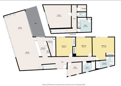 5.3m x 4.9m With floor to ceiling glazed wall and sliding door.